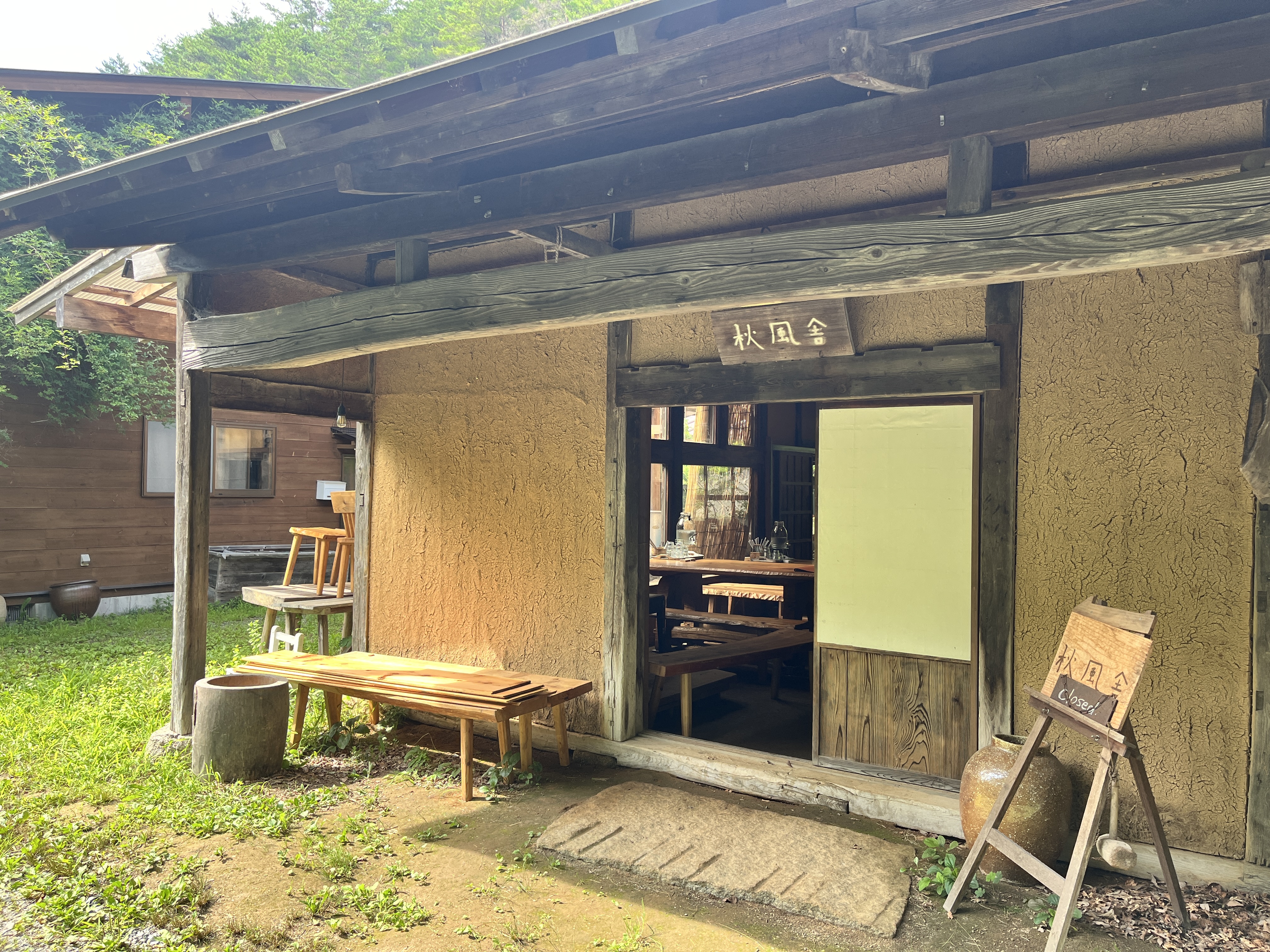 耳を澄ませば川のせせらぎの音が聞こえる、木々の緑に囲まれたところにあります。地元産の食材を使った週替わりの料理やスイーツを提供し、手作りの家具や器に囲まれた温もりある空間でくつろげます。自然と文化、人とのつながりを大切にする、地域に開かれた癒しの場です。